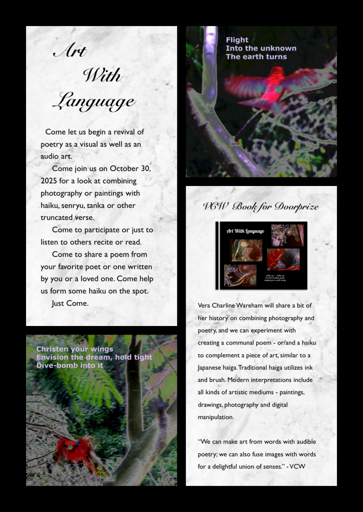 Please join us and take the opportunity to network with local artists, as well as supporters of the arts. Everyone is welcome!